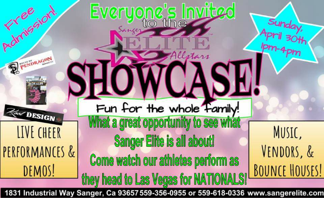 April 30, 2017 @ 1:00 pm - 4:00 pm Sanger ELITE Allstars Showcase Sanger ELITE Allstars 1831 Industrial Way, Sanger