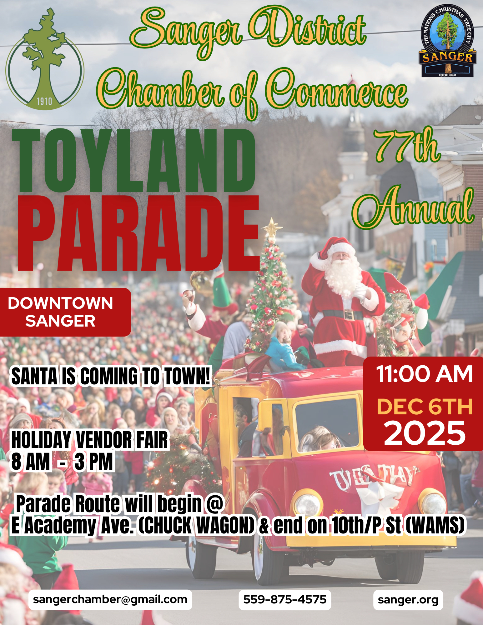 December 3 @ 5:00 pm - 8:00 pm 42nd Annual Christmas Tree Lighting Brehler Square 7th & N St., Sanger , CA, United States