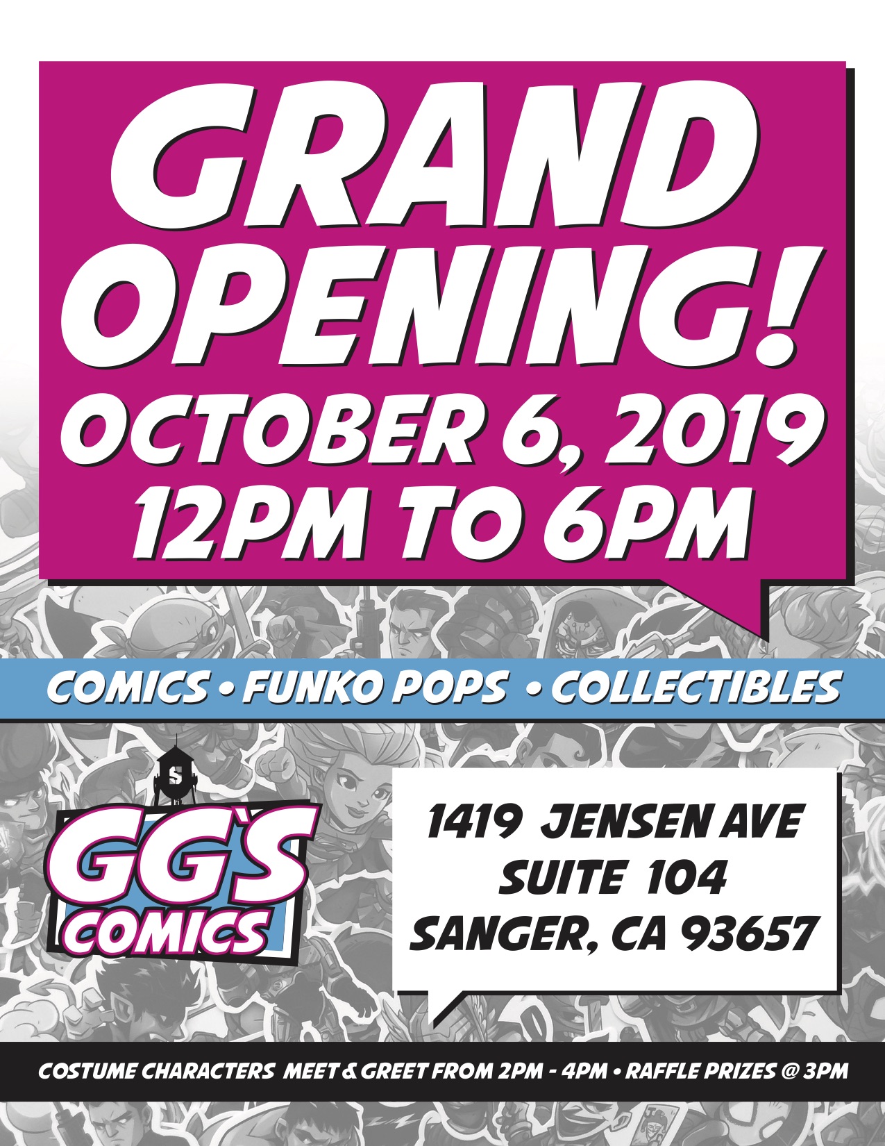 Costume Characters Meet & Greet from 2pm to 4pm. Raffle at 3pm