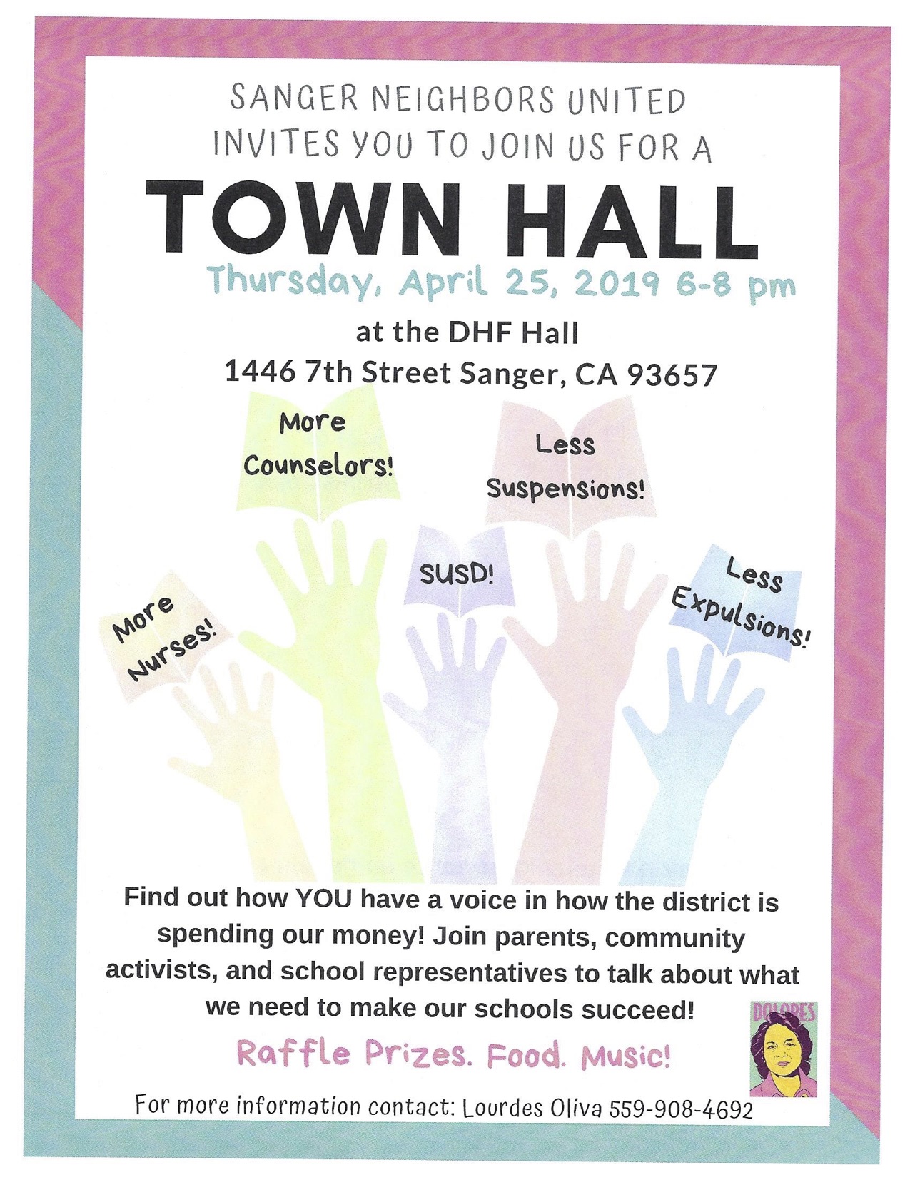 April 25, 2019 @ 6:00 pm - 8:00 pm Sanger Neighbors United Town Hall Meeting Dolores Huerta Foundation Hall 1446 7th Street, Sanger, CA, United States