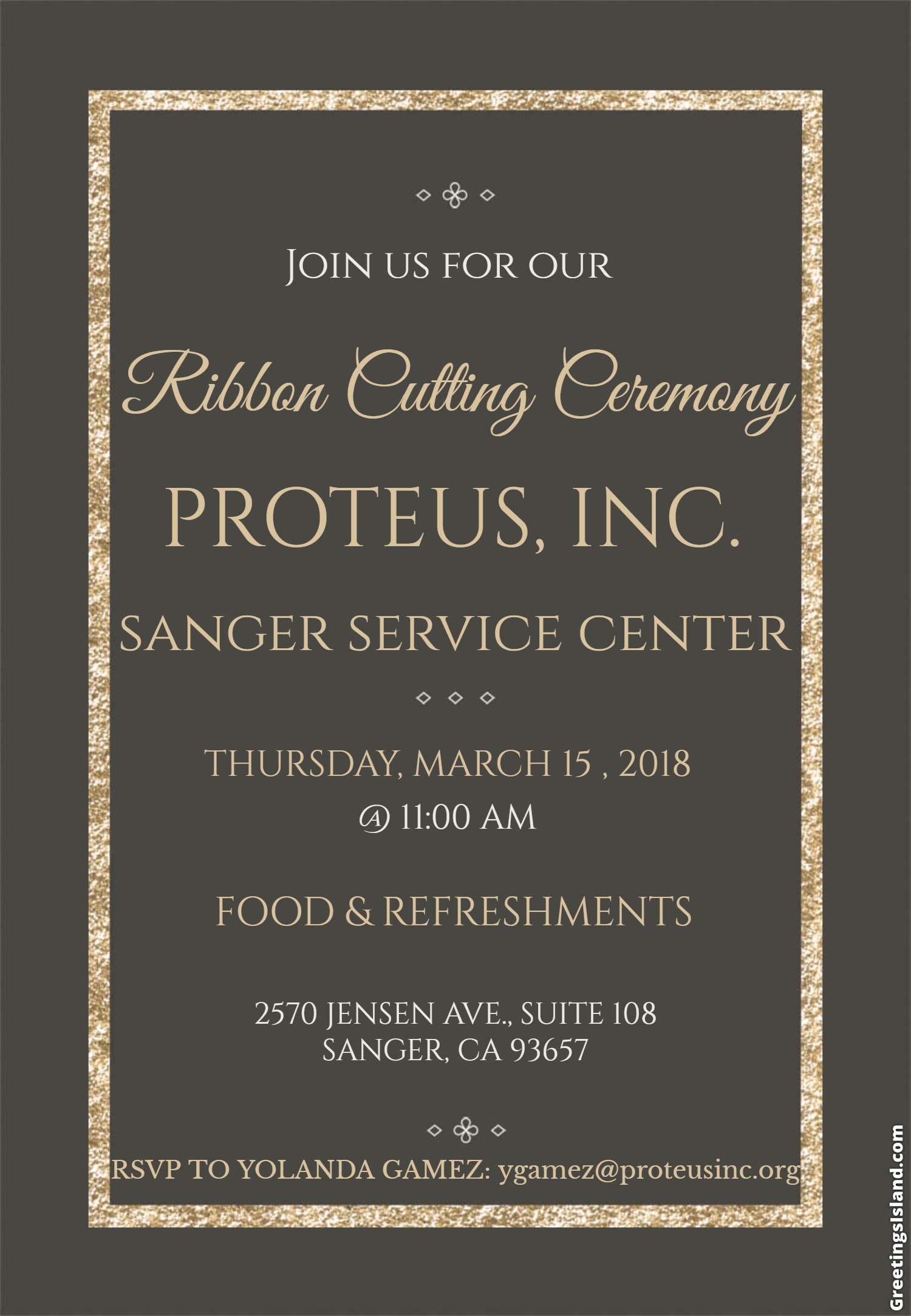 March 15, 2018 @ 11:00 am - 12:00 pm Proteus Inc. Ribbon Cutting Ceremony for Sanger Service Center Proteus Inc. 2570 Jensen Ave., Suite #108, Sanger, CA, United States